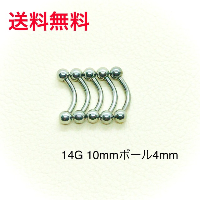送料無料 5本セット バナナバーベル 14G サージカルステンレス 内径10mm、ボール4mm ボディピアス