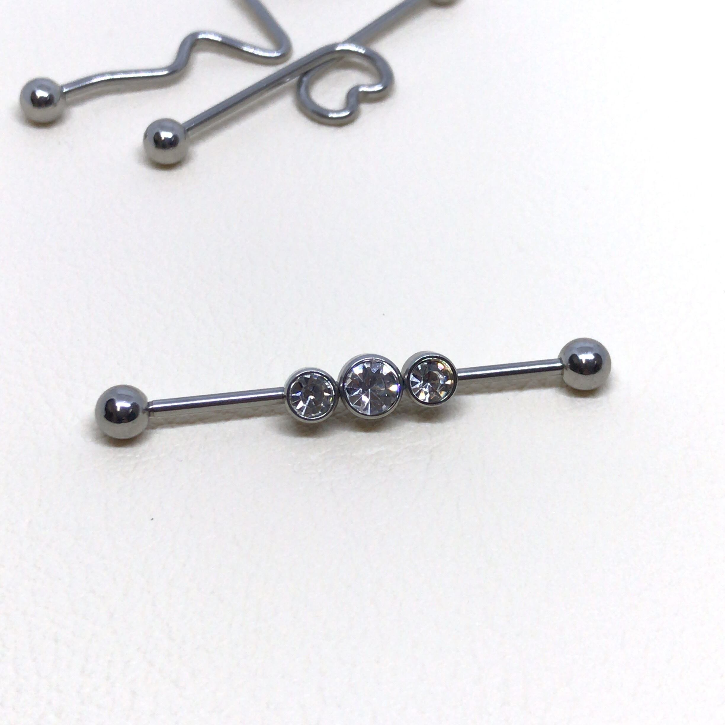 送料無料‼️インダストリアル 3連ストーン付き 14G ボディピアス