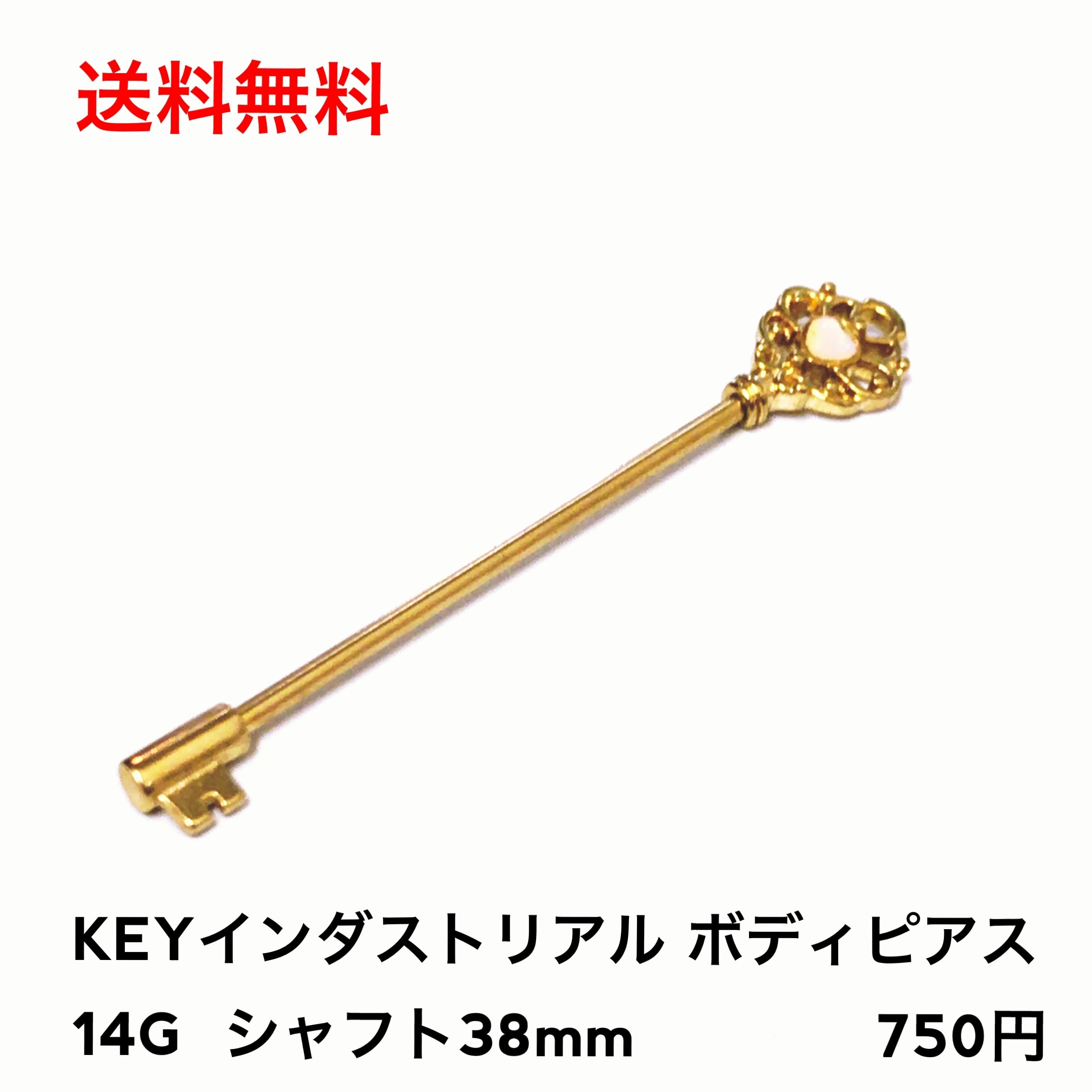 送料無料 ゴールド 鍵モチーフ インダストリアル 14G ボディピアス